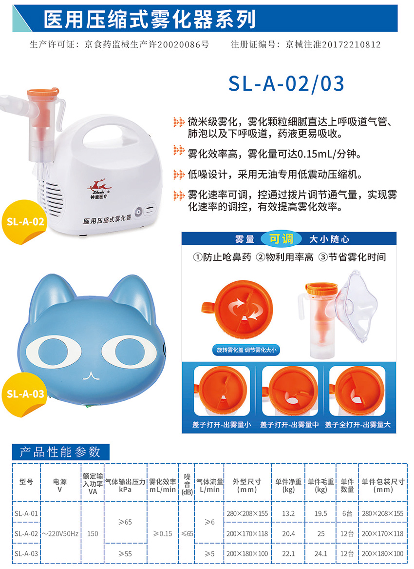 产品采用压缩式雾化方式,利用压缩空气将液体药物雾化成细微的雾状颗粒,伴随自然呼吸而到达深层病患部位,同时相比打针、吃药具有安全、副作用小、显效快、容易接受的特点。